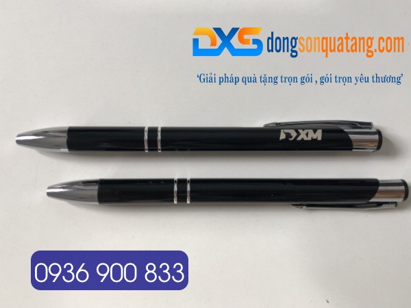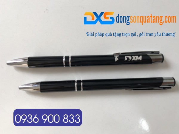 Bút Bi Bấm Kim Loại Màu Đen Khắc Logo Thương Hiệu XM