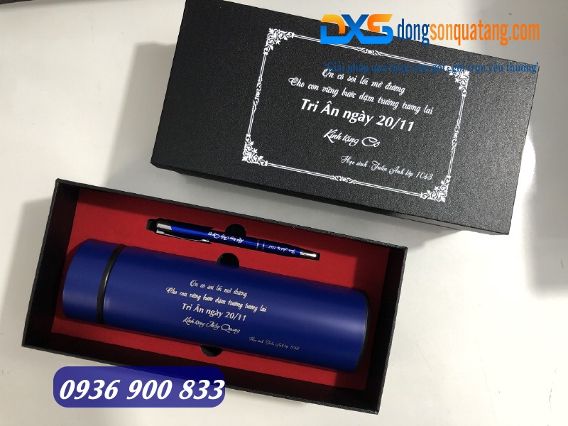 Combo Bình giữ nhiệt – Bút kim loại in khắc nội dung tri ân thầy cô giáo ngày nhà giáo Việt Nam