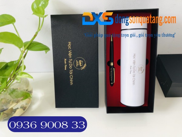 ComBo Bình Giữ Nhiệt + Bút Xoay Kim Loại In Khắc Logo Học Viện Tự Do Tài Chính