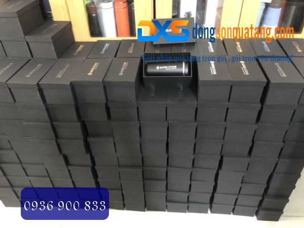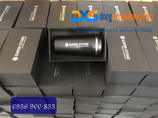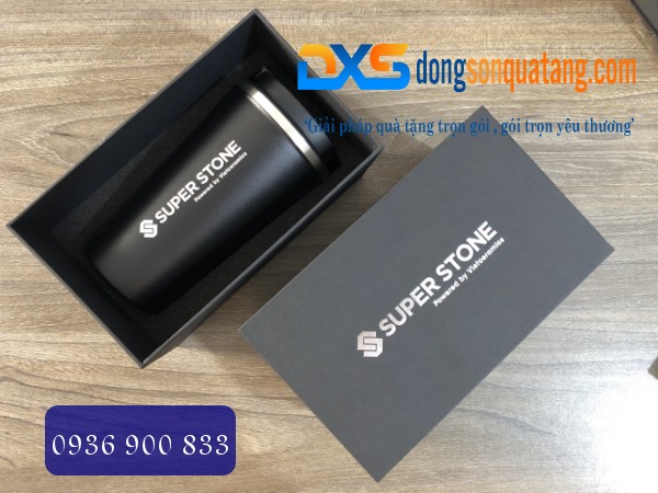 Ly Giữ Nhiệt Quà Tặng Màu Đen In Khắc Logo Công Ty SUPER STONE