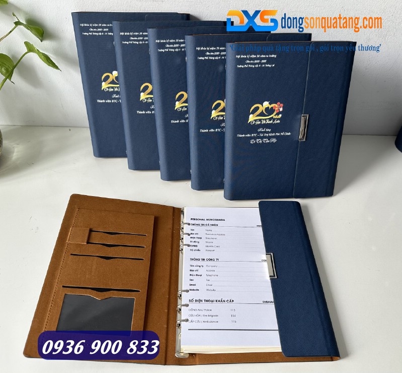 Ưu điểm: Lịch sự, dùng ghi chép, lưu giữ kỷ niệm. In logo, dập chữ nổi trên bìa.