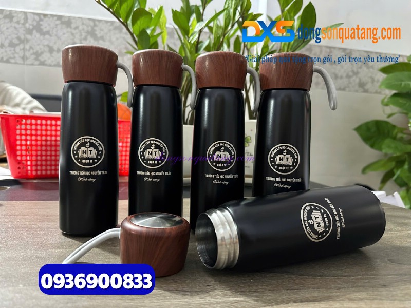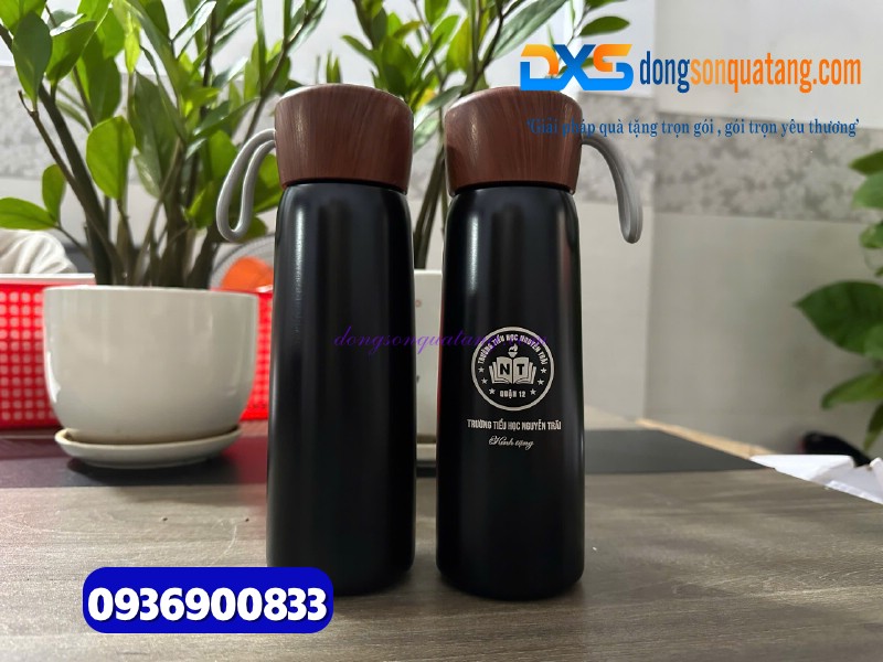 1.Bình Giữ Nhiệt Nắp Gỗ Quai Xách 500ml – Quà Tặng Doanh Nghiệp Sang Trọng Và Đầy Tinh Tế