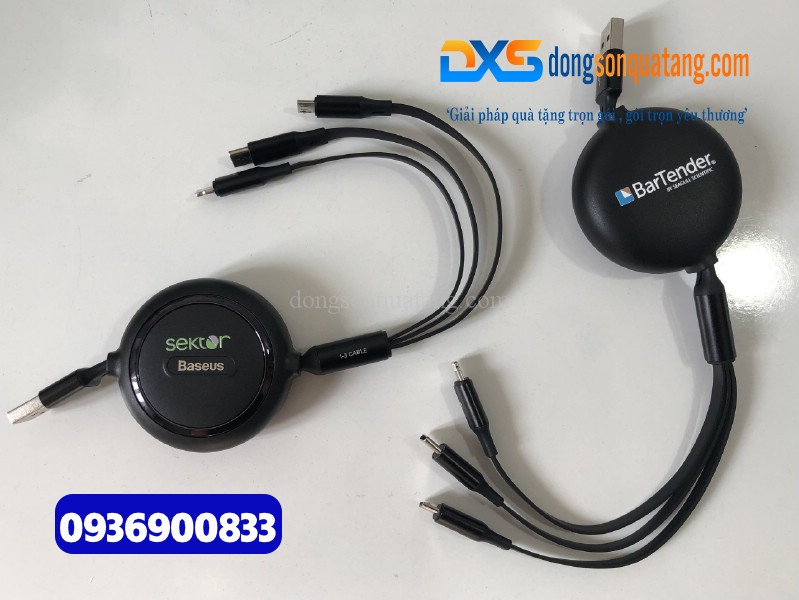 Dây Cáp Sạc 3 Trong 1 In Logo BarTender – Quà Tặng Nhân Viên Ngành Pha Chế Ý Nghĩa