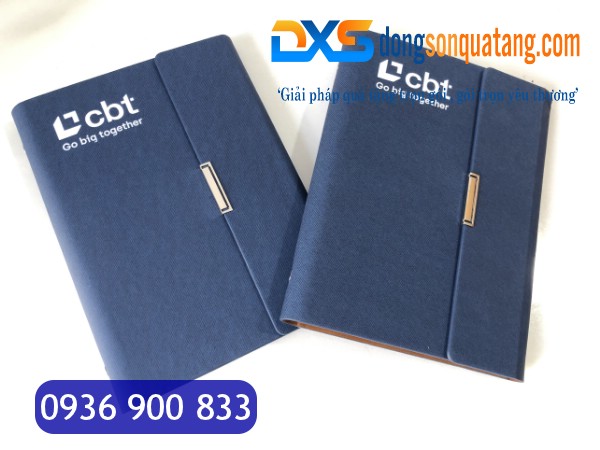 SDX 004 – Sổ Bìa Da In Logo Công Ty A5 Màu Xanh Kèm Khóa Cài Nam Châm Gập 3