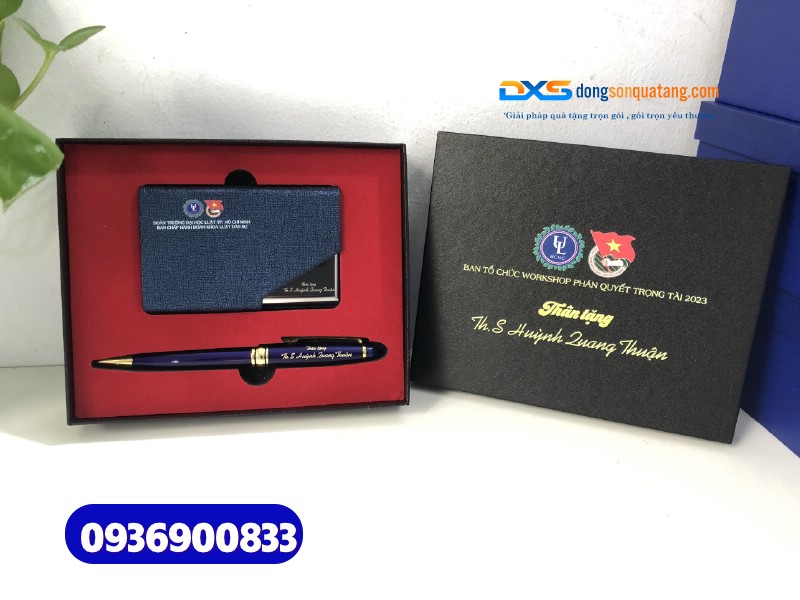 1.Set quà tặng Cán Bộ Đoàn ( Hộp name card+Bút kim loại cao cấp )- SQX 020 | In ấn logo ĐTN Đại Học Luật